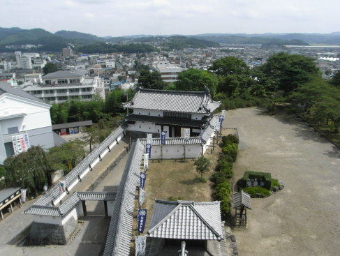 | 大手一の門と二の門を天守から。 その奥には白石市街が広がります。 |