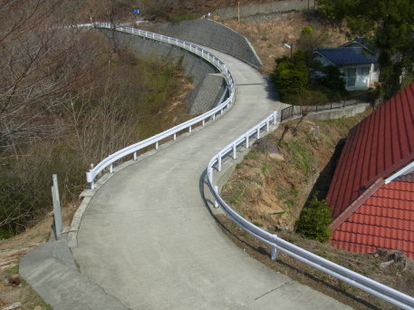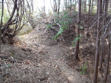 | 尾根続きの再後背の土橋跡の道路。 | |