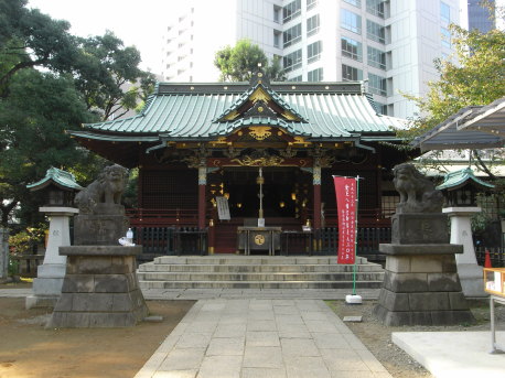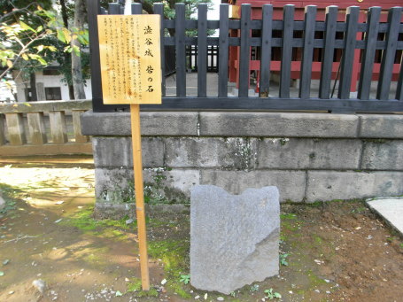 <沿革> 城跡に建つ金王八幡宮の『金王八幡社記』によれば、武蔵国橘樹郡河崎(現在の川崎市)に 住していた秩父平氏の一族河崎冠者基家が源義家に渋谷を含む谷盛七郷を与えられ、基家の 子重家がこの地に館を築いたとされる。 渋谷の地名は、重家の子重国が応保年間(1161〜62)に相模国高座郡渋谷荘に領地を得て、 渋谷荘司を称したことに由来するとされる。『社記』によれば、渋谷城には重家の子(すなわち 渋谷重国の兄弟)の渋谷金王丸常光が引き続き住んだ。金王丸は、『平治物語』に源義朝の 郎党として登場し、義朝が長田忠致に暗殺されると、その死を義朝の愛妾常盤御前に伝えた とされる。後に頼朝に従って美濃国長森荘の地頭となり、文治年間(1185〜90)に長森城を 築いたともいわれる。また、『吾妻鏡』に現れる土佐坊昌俊は金王丸と同一人物であるといわ れるが、確証はない。昌俊は文治元年(1185)、頼朝の命を受けて京にいる源義経の討伐へ 向かったが、返り討ちにあって殺された。 金王丸以降の武蔵渋谷氏については、ほとんど明らかとなっていない。大永四年(1524)に 北条氏綱が江戸城を奪わんとして扇谷上杉朝興と高輪原の戦いに及んだ際、渋谷城は北条 方によって焼き払われたとされる。以後再建されることなく、渋谷氏は滅んだとみられている。 <手記> 渋谷警察署裏手の金王八幡宮は、渋谷城の一角に造営されたとされています。渋谷駅前の 明治通りは渋谷川の河道上を走っており、川が渋谷城の西から南へと流れていたことを示して います。また、城の東を旧鎌倉街道が走り、北東には別の谷戸(黒鍬谷)が入り込んでいたと されています。 八幡宮は警察署側から上って一旦高止まったところに位置していて、谷戸に臨む台地を利用 した城館だったことがわかります。警察署のあたりには、かつて堀があったといわれています。 遺構はとくには残っていませんが、神社本殿前に城の石垣の一部と称する「砦の石」なるもの が置かれています。ただし、戦国時代中期までの城であることを勘案すると、@そもそも石垣が あったのかAもしあったとしても、当時の技術力から見て綺麗に削られすぎているようにみえる、 という疑問がぬぐえません。 |