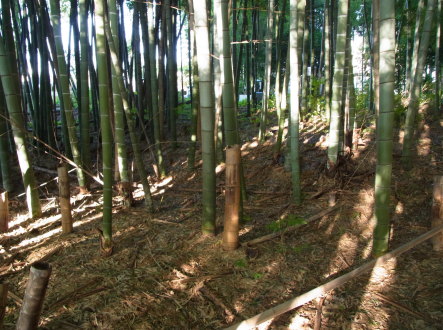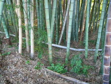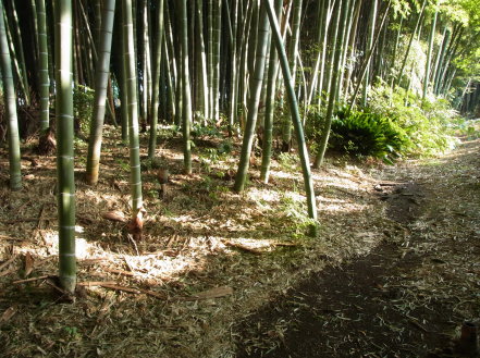 <沿革> 『新編武蔵国風土記稿』によれば、開発領主勝呂氏の祖、須黒氏の居館とされる。 勝呂氏は武蔵七党の1つ村山党庶流とされるが、詳しい系譜は不明である。 勝呂氏の先祖が須黒氏とあるのは、『吾妻鏡』にみえる「須黒兵衛太郎」が、建保 元年(1213)に勝呂神社本殿を再建した勝呂太郎恒高と同一とされることによるもの で、読みはいずれも「すぐろ」である。恒高は、承久三年(1221)の承久の乱で討ち 死にしたとされる。 <手記> 『記稿』にしたがえば、現在の大智寺境内が勝呂氏初期の館跡ということになり ます。北東1km弱のところに、一般的に勝呂氏館跡とされる宗福寺があります。 大智寺はかなり広大な境内を有していて、この敷地全体が館跡などということは とても考えられません。墓地を抜けて北西の裏手へ回ると、一部二重となった堀と 土塁の痕跡のような箇所が認められます。ただ、これが館のものか寺のものかは 判断が付きかねます。 このお寺の一番の見どころは、境内に独立して建つまるでキリスト教会のような お堂です。ちょっと堂内を覗かせていただいたところ、色鮮やかなステンドグラスに 袈裟を着たお坊さんのイコンがあるなど、宗教の垣根をだいぶ飛び越えていて新鮮 に感じました。 |