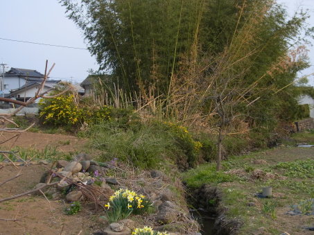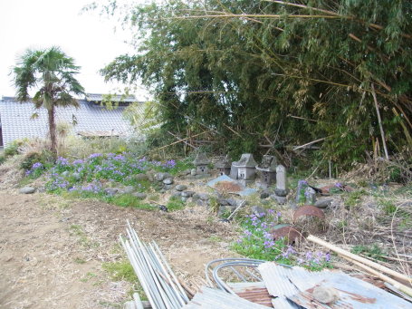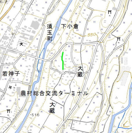 <沿革> 真田隠岐守信尹の屋敷跡とされる。信尹は真田幸隆の四男で、武田氏の滅亡後は 徳川家康に仕えた(一時期徳川家を出奔して浪人していた)。 旧明野村教育委員会による屋代氏居館跡の説明板によれば、慶長十九年(1614)に 巨摩郡1万5千石を信尹と屋代勝永、三枝昌吉の3人で分割したとされる。他方、『日本 城郭大系』によれば、慶長六年(1601)の検地記録に、「真田隠岐守」の知行が郡内に 計上されているとされる。なお、屋代・三枝両氏は後に徳川忠長の附家老となり、忠長 が改易となると両氏も所領を没収されているが、信尹流真田氏は旗本として続いている。 他方で、信尹が武田家臣であった頃に、すでに大蔵を領していた可能性も否定はでき ない。信尹は、武田信玄の命により甲斐の旧族加津野氏の名跡を継いでおり、真田家 とは別に甲斐国内に所領を与えられていたとしても不思議ではないが、確証はない。 <手記> 真田氏館は、須玉川の河岸段丘上に位置しています。館の東には、より高い塩川の 河岸段丘の細尾根が南北に延びています。川と峰に挟まれた河岸段丘上という立地は、 塩川の対岸にある屋代氏館と非常によく似た選地となっています。 現在、館の西辺と思われる堀と土塁の跡が残っています。堀跡は水路や畑地となって おり、当時から灌漑用水が引かれていたものと思われます。南西隅付近の土塁は藪化 していますが、もっともよく残っている箇所です。屋敷側とみられる藪の東脇には、数基 の小さな墓石や祠が並んでいます。 近くで畑作をなさっていた方に伺ったところ、近年までそこには土塁の持ち主の民家が あったということで、墓碑なども屋敷にちなんだものだということです。ただ、その民家を はじめ集落内の主だった旧家はみな土屋姓を名乗っていて、真田姓はいないとのこと。 土屋氏といえば、やはり武田家臣から徳川家臣に転じた一族として知られていますが、 真田氏館との関連は不明です。 『大系』によれば、かつては北辺の土塁も残っていたそうですが、こちらは今では失わ れているようです。また同書では、真田氏館は方形の曲輪を2つ東西に並べた構造で あったと推測していますが、現地を訪れた感触や、東西方向の土塁よりも南北方向の 土塁が長かったということから、曲輪の並びは南北の誤りではないかと思われます。 おそらく、少林寺に西接していたものと考えられます。 |