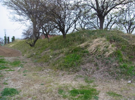 <沿革> 屋代越中守勝永(秀正)の屋敷跡とされる。屋代氏は信濃国更級郡の豪族であったが、 勝永の伯父正国の代に武田氏の家臣となり、天正十年(1582)の武田氏滅亡と本能寺の 変の後は徳川家に仕えた。徳川家康が関東に移封となった同十八年(1590)までの間に、 すでに一度神取村を領していた可能性も考えられるが、詳細は不明である。 現地の説明板によれば、慶長十九年(1614)に、巨摩郡を勝永と真田信尹、三枝昌吉 の3人で分割し、このときに上神取に屋敷を築いたとされる。他方、『日本城郭大系』に よれば、慶長六年(1601)の検地記録に、「屋代越中守」の知行分として神取村をはじめ 郡内6千余石が計上されているとされる。いずれにせよ、関ヶ原の戦い以降に入部した ものとみるのが妥当と思われる。 勝永は、徳川忠長の附家老となり、小諸城代を務めた。しかし、勝永の子忠正の代の 寛永九年(1632)に忠長は改易処分となり、屋代氏も所領を失った。忠正は後に安房 国内で1万石の大名として復帰しているが、甲斐の所領は戻らなかったものとみられる。 したがって、屋代氏の屋敷は寛永九年時点で廃されたものと推測される。 <手記> 屋代氏館は、塩川の河岸段丘上に位置しています。館の東には、もう1段河岸段丘が あり、川と峰に挟まれた台地上という立地は、塩川の対岸にある真田氏館と非常によく 似た選地となっています。 現在、館の西辺の土塁の一部が残っています。あくまで土塁の断片ですが、旧明野村 の史跡に指定されていたということで、保存状態は良好です。また、真田氏や三枝氏の 館跡にはない説明板も設置されています。かつては、地割に屋敷跡の外縁をみることが できたそうですが、近年土地改良が行われたようで、土塁のほかに屋敷跡を偲ぶものは 見受けられません。 |