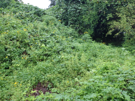| 南東側の空堀状地形。 遺構かは不明です。 |