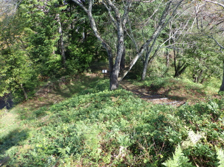 | 主郭東下を見下ろす。帯曲輪跡か。 | |