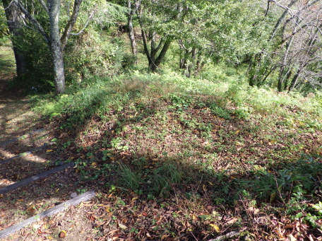 | 主郭南西尾根の平場。 遺構かは不明です。 |