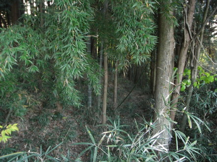 <沿革> 箕輪城の支城として、長野業正によって築かれたとみられる。 永禄九年(1566)、長野氏攻めの大軍を起こした武田信玄は、まず高浜砦を急襲した。 那波無理之助宗安率いる250の兵は、夜陰に紛れて雉子ヶ尾峠を越え、明け方に砦へ 攻めかかった。城将匂坂長信はこのとき箕輪城に詰めていて、主のない砦はたちまちに 落ちた。宗安は、高浜砦に火を放って東へ向かった。 同年中に箕輪城は落ち、長野氏一族郎党は城内で自害した。このとき主君長野業盛に 殉じた家臣のなかに、高浜六郎業方の名がみえる。あるいは高浜砦と関係のある人物と 思われるが、詳細は不明である。 <手記> 高浜砦は、烏川とその支脈の鳥居沢川が形成する河岸の細い尾根上の城です。尾根 を空堀と土塁で切っただけのほとんど単郭の砦です。その土塁と堀は、以前は東側にも 見られたようですが、宅地などの開発により消滅したようで、現在は西半分のみが残って います。 また砦の南東端には、稲荷神社となっている小さな腰曲輪があります。城址碑や説明 板などはありません。 |