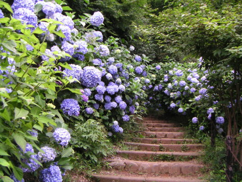 <沿革> 築城の経緯は不明である。享徳四年(1455)の分倍河原の戦いに敗れた上杉(犬懸)憲秋 が高幡不動で自害していることから、このころかこれ以降に、何らかの施設が築かれたものと 考えられている。 戦国時代には北条氏照の家臣高幡十右衛門が居城としていたとされるが、詳細は不明で ある。 <手記> 高幡不動尊の裏山、浅川と程久保川に挟まれた丘が高幡城址です。史料にはほとんど みられないものの、山頂の本丸を中心にいくつかの削平地や堀切、土塁の跡が認められ、 中世城郭が存在したことは疑いないと思われます。 ただ、後北条氏の手が入っているにしては単純な構造に見えるため、恐らくは監視用の 砦の域を出るものではなかったものと推察されます。 ちなみに、私が訪れたのはちょうど不動尊のあじさい祭りのときで、城山の散策路にも せり出すほどさまざまな紫陽花が咲き乱れ、とても綺麗でした。このことに訪れると二度 楽しめておすすめです。 |