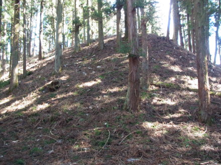 | 帯曲輪南側の広い曲輪(三の丸か)から本丸方面を望む。 | |