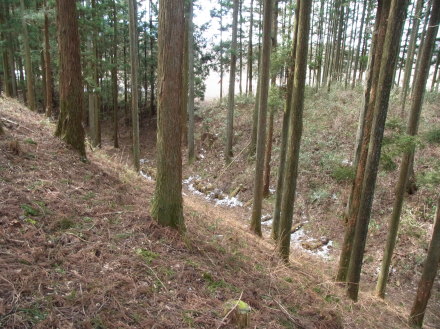 | 本丸北の帯曲輪(二の丸か)の空堀。 | |