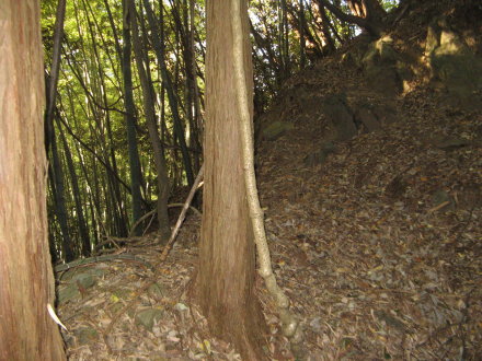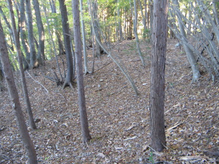 | 主郭脇の腰曲輪のようす。 | ![]() |