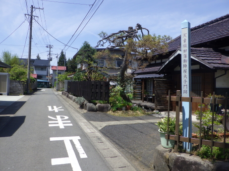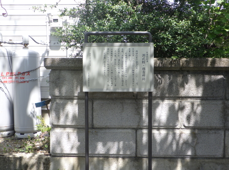 参道脇の道場・調武館と稽古場跡の説明板。 | |