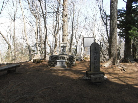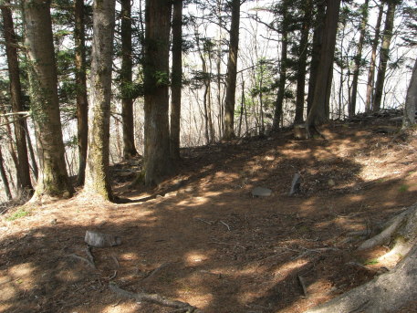 <沿革> 河口湖南東にそびえる天上山山頂には烽火台が設けられていたとされる。御坂峠と富士吉田方面 を結んでいたものと推測されるが、詳細は不明である。 <手記> 河口湖ロープウェイの終点天上山富士見台駅一帯は、河口湖と富士山が一望できる絶景スポット として知られています。5分ほどさらに東へ上ると、天上山の山頂に行きつきます。山頂には小御嶽 神社が祀られていますが、烽火台遺構については不明瞭です。一応山頂から下に2段ほどの削平地 が認められますが、これが烽火台のものなのか否かは不明です。 余談ですが、天上山は童話「かちかち山」の舞台だそうです。背中に火を付けられた狸は、天上山 から河口湖めがけて駆け降りたのだそうです。 |