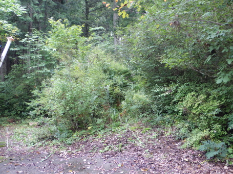 | 登城口。藪を抜けると道があります。 | |