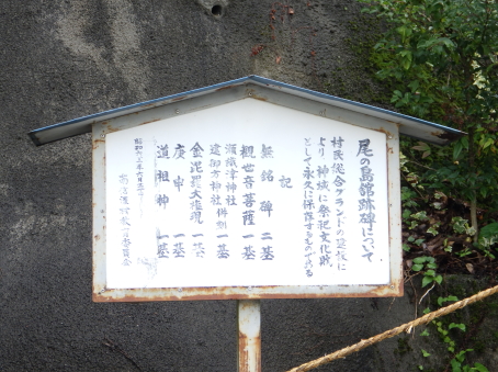 | 石碑群に関する説明板「尾の島館跡碑について」。 | |