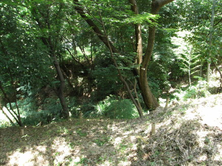 | 丘陵先端の遊歩道と雑木林。 よく見ると手前と右奥で2段になっているようにみえます。 |
