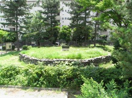 | おまけ:団地内の公園に復元された八角堂基壇。 | |