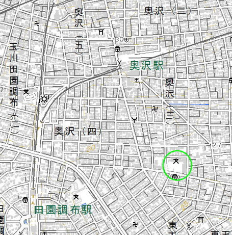 <沿革> 奥沢小学校付近には「出張」という小字が残っており、吉良氏重臣の奥沢城主大平氏の出城 「等々力城」があったところと推測されている。ただし確証はなく、他の候補地を唱える説もある。 <手記> 東京都遺跡地図にも大平砦として掲載されている奥沢小学校は、北と東にやや下がる地形に なっていますが、眺望や要害性に優れているとは少々言い難い場所です。周辺にはもっと深い 谷や高所になっているところが少なからずあり、ここに出城が設けられる理由がどうも思い浮かび ません。 ここからはちょっとした私見になりますが、奥沢駅の北にある奥沢神社は、もともとは八幡神社 で、大平氏が城の守護神として創建したものと伝えられています。守護神というからには普通に 考えて鬼門除けであったものと推測されますが、奥沢神社は奥沢城の東南東、奥沢小学校の 北北西に位置しています。この神社を鬼門とする、すなわち神社の南西にあるのが、同じ世田谷 区立の八幡小学校です。八幡小学校は、はじめ奥沢(八幡)神社境内に建てられたことからその 名があります。現在八幡小学校の建つ場所は、かつて何があったのかは不明ですが、東急線の 線路が眼下を走っていることを除いても、周辺でもっとも高いピークのひとつであると思われます。 奥沢神社が城の鬼門除けであったとすれば、それに対応する城はこのあたりにあったと考えるの が妥当なのではないかな、と歩き回ってみて感じました。 |