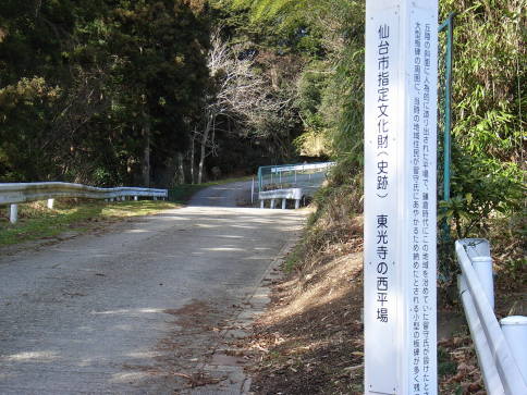 <沿革> 東光寺は、留守氏4代留守家政の妹の菩提寺といわれている。この寺の裏山一帯に中世城郭 遺構がみられるというが、寺の縁起との関連は不明。寺の西側には、市指定史跡の削平地跡が ある。岩切城の支城であることは間違いないと思われる。 <手記> 岩切城への最寄りである今市橋バス停のすぐ裏手にあり、高森山の峰続きの最も川沿いに位置 しています。寺を取り巻く裏山筋に曲輪を幾つか配置する、典型的な鎌倉期城館の地形であるため、 築城もその前後になされたものと思われます。 遺構は、全山が東光寺の墓地として開発されてしまっているためにどれが当時のものか判別しが たい状態です。市指定史跡という西側削平地も、車道が舗装されているためにはっきりしません。 おそらく、防御というより岩切本城からは開けていない東南麓方面への眺望を補うものと推測され ます。 |