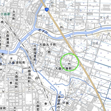 <沿革> 在地領主戸蒔氏の居城とされる。戸蒔氏は武田氏の庶流とされるが、詳しい系譜は定かで ない。戦国時代には戸沢氏に属したものの、他の周辺領主と同様、一定の独立性を保持して いたとみられている。 天正十八年(1590)の奥州仕置によって、戸蒔城は戸沢三十五城の一つとして豊臣秀吉の 命で破却された。これにより、戸蒔氏は正式に戸沢家臣として組み込まれたものとみられる。 慶長五年(1600)の関ヶ原の戦いでは、最上義光の要請を受けた戸沢政盛が小野寺義道を 攻めた際、戸蒔義広が角間川で戦死している。 <手記> 戸蒔城は現在の戸巻町の神明社を中心とする一帯にあったとされています。ただし、国土 地理院地図の年代別航空写真を見ても痕跡すらうかがえず、どのような城館であったかは 不明です。 戸蒔義広はゲーム「信長の野望」にも登場する武将なので、個人的に関心があり、オフ会 で車に乗せていただいたフォロワーさんにお願いして立ち寄ってもらいました。しかしながら、 遺構はおろか何の痕跡もない住宅街へご案内する格好となり、ありがたくも申し訳なく思って います^^; |