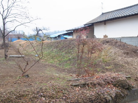 | 土塁。中央左の切れ込みは虎口か。 | |