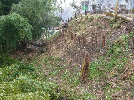 | 西からの登り道中途の切れ込み地形。 南端の切岸か。 |