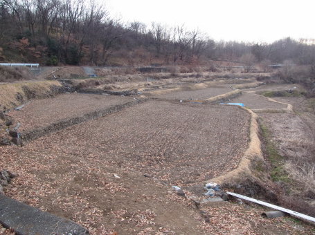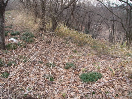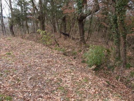 <沿革> 『甲斐国志』に記載があるとされるが、詳細は不明である。 <手記> 『中世城館調査報告書集成』によれば、宮久保字権現沢の権現沢川とその支流に 挟まれた細長い峰上にあったとされています。 現況、峰先は林と重機道で、付け根付近から上は畑地となっています。峰先の脇に 削平地様の平場と、付け根付近に堀状の溝が認められますが、いずれも城の遺構か どうかは分かりません。また、東辺付け根付近には虎口状の切れ込みがありますが、 これも城のものかは判断しかねます。 東側麓の窪地には、土地改良されていない昔のままの段築状の水田があるのです が、あるいは砦にまつわる根小屋関連の跡のようにも感じられます。 砦ということから臨時の防御施設という推測が第一に成り立ちますが、周辺は水源 の豊かな地域なので、在地領主の城館であったとする考えも捨てきれないところかと 思われます。 |