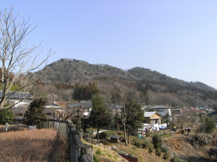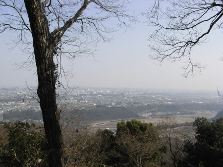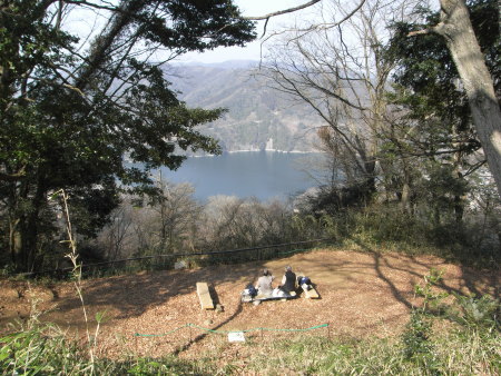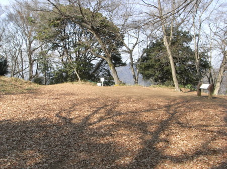 | 本城曲輪から米曲輪を望む。 そのむこうには津久井湖が見えます。 |