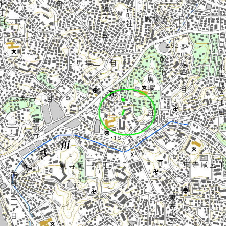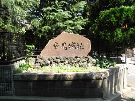 <沿革> 諏訪氏の居城といわれる。寺尾諏訪氏は信濃の諏訪氏の一族ともいわれるが、 詳細は不明である。西寺尾村の白幡明神が、永享年間(1429〜41)に諏訪氏に よって勧請されたことが『新編武蔵国風土記稿』に記されていることから、このころ 既に寺尾城が築かれていたものと考えられている。 後北条氏の勢力が伸張してくると、諏訪氏はその配下となり、江戸衆に属した。 天文年間(1532〜55)以降の寺尾の領主として、諏訪三河守の名がみられる。 建功寺の過去帳によれば、三河守の後は平三郎、三河守、馬之丞と続いた。また、 『北条記』には北条早雲(伊勢宗瑞)から孫の氏康の代にかけての北条家臣として、 「諏訪右馬助」という人物が登場する。しかし、この右馬助と寺尾諏訪氏との関係は 不明である。 <手記> 寺尾城は、鶴見川から西に2kmほど入った丘陵地帯の一角、入江川流域の複雑 な谷戸地形の一端に築かれています。上から見ると三叉ブーメランのような形をして いて、北側のみ峰続きです。 ちょうどブーメランの重心あたり、上の地図の点で示した角に城址碑があります。 遺構としては土塁や空堀跡が散在しているということです。ただ、その多くは個人宅 の敷地内にあるため、自由に見て回ることはできないと思います。 城山の南側直下の谷間にある新しいマンションを通り抜けると、プレイロットと呼ば れる区画があり、そこに土塁と説明板があります(上の地図の太線のあたり)。この 土塁は長さ20mほどあるというのですが、縄張り上どのような役割を持っていたもの なのか、少々想像しがたい位置にあります。『日本城郭大系』では、その他の土塁 遺構についても図示していますが、これらをどうつなぎ合わせても今ひとつ城の輪郭 が見えてきません。 ちなみに、このプレイロットは随分と人の手が入っていないようで、蜘蛛の巣は張り 放題、枝葉は伸び放題で、プレイどころかベンチに座るのも困難です。 |