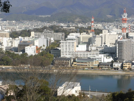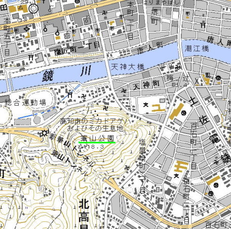<沿革> 暦応三/興国元年(1340)一月、細川定禅の要請のもとに結集した北朝軍が大高坂城を 攻囲した際、救援のために南朝の軍勢が潮江山に参集したことが記録に見られる。ただし、 当時の潮江山に城砦が営まれていたかどうかは不明である。 潮江城が本格的な中世城郭として整備されたのは、戦国時代に同地に勢力を拡大した 本山氏の手によるものと考えられている。 永禄三年(1560)、長浜戸の本の戦いで勝利した長宗我部軍は、敗退する本山勢を追って 潮江城に迫った。このとき、初陣であった長宗我部元親は、潮江城には兵が残っていないと 判断し、そのまま城へ攻め上ろうとした。家臣たちはこれを諫止したが、元親と弟の親貞は かまわず進撃した。すると城中はもぬけの殻で、元親らは難なく城を乗っ取ることができたと いわれる。 戦後、潮江城には森孝頼が配された。森氏はもともと土佐郡森郷の領主であったが、隣領 の本山氏に逐われて長宗我部氏を頼っていた。元親は、本山氏攻略に際して孝頼を旧領の 森城へ送り込み、本山城周辺を撹乱させた。 本山氏が滅ぶと、孝頼はそのまま森郷を与えられたとされる。潮江城のその後の動向に ついては不詳である。 <手記> 潮江城址は、現在は筆山公園として高知市民の憩いの場となっています。北に鏡川、東に 浦戸湾を望む半独立山上の城です。 頂上の主郭と思われる場所には遊具が立ち並んでいますが、周囲が堀切状になっていて、 当時のようすをうかがうことができます。ただ、山頂部全体が整備されているため、どこまで が城の遺構かは判別しがたい状態です。 また高知市街にありながら、車以外ではアクセスしにくいのが難点です。 |