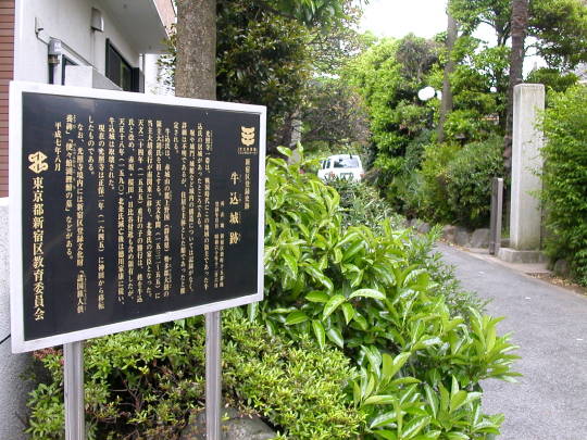 <沿革> 上野国勢多郡大胡(群馬県前橋市)の領主大胡重行は、天文年間(1532〜54)に 北条氏に仕え、武蔵国豊島郡に移った。大胡氏は藤原秀郷の後裔とされるが、南北 朝時代に一度没落したとされ、その後の系譜は詳らかでない。重行の子の勝行は、 牛込の地に城を築き、姓を牛込氏に改めた。牛込氏は、赤坂・桜田・日比谷付近まで 領したという。 勝行の子勝重の代に北条氏が滅亡し、勝重は後に徳川家康に召しだされ、牛込氏 は旗本として続いた。牛込城自体は、家康の江戸入府に伴って廃されたものと思わ れる。 <手記> 現在の光照寺一帯が城域です。北面と東面が谷地になった、舌状台地の先端に 立地していま。城の南と西は丘が続いていて、防衛性にも眺望性にも欠けるため、 御殿山城や筑土塁と対で今の神楽坂・大久保通りに挟まれた谷戸とその東方に臨 んでいたものと思われます。 |