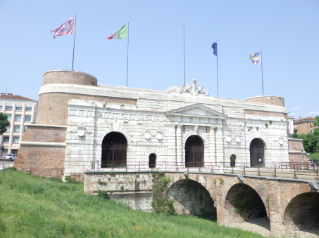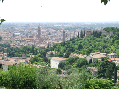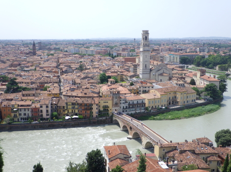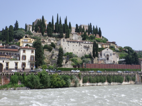 <沿革> ヴェローナには有史以前から集落が営まれ、ローマとははじめ同盟関係にあった。紀元前49年 までには共和制ローマの支配下に入り、ムニキピウム(自治都市)に認定された。同じころに最初 の城壁が整備されたとみられ、現存するボルサーリ門やレオーニ門は、その碑文によれば1世紀 に建て替えられたとされる。 多くの交易路が交わるヴェローナは急速に発展し、円形闘技場なども含めて市街は早々に城壁 の外へと拡大した。そのため、265年にガッリエヌス帝の命で新たな城壁が築かれた。このころ、 イタリア北部は北からの異民族の侵入に悩まされていたほか、しばしば内戦の舞台となっている。 312年にはルリキウス・ポンペイアヌスがヴェローナに籠城し、皇帝コンスタンティヌス1世軍に包囲 されて敗死した(ヴェローナの戦い)。 民族大移動下の402年、西ゴート族のアラリックがイタリアに攻め込み、やはりヴェローナに籠城 したが、翌年のヴェローナの戦いで西ローマ帝国の将軍スティリコに敗北した。しかし、452年には フン族の王アッティラが50万の軍勢を率いて侵攻し、ヴェローナを含む北イタリアの諸都市で略奪 をはたらいた。これを受けてローマ教皇レオ1世はアッティラと会見し、和平とイタリアからの撤退を 実現させた。 西ローマ皇帝は将軍オドアケルによって廃されたが、オドアケルも489年に東ローマ皇帝ゼノン の要請を受けた東ゴート王テオドリックにヴェローナ南東での野戦(ヴェローナの戦い)で敗れた。 493年にオドアケルを殺害したテオドリックは、王国の首都をラヴェンナに置いたが、ヴェローナも お気に入りの居城の一つとして再興した。 526年にテオドリックが死去すると、王位を巡って内紛が勃発し、東ローマ帝国の介入を招いた。 東ローマ軍がイタリア半島へと攻め入ると、ヴェローナは東ゴート勢の防衛拠点の一つとなった。 東ゴート王国は553年ないし555年に滅亡したが、東ゴート族はその後も抵抗を続け、ヴェローナは 561年に降伏したとされる。 568年、ランゴバルド族の王アルボインがイタリアへ侵攻し、ヴェローナを無血で占領したとされる。 アルボインはイタリア王を称し、ヴェローナを首都としたが、572年に後妻に殺害された。ちなみに、 アルボインはテオドリックの妹の曽孫にあたる。アルボインの後継者クレーフィも574年に暗殺され、 ランゴバルド王国は一時的に30以上の諸公による合議政体となった。この「諸公の時代」は584年 にアウタリウスが王に選出されて終わりを告げるが、この間にヴェローナの地位は低下し、首都は パヴィアへ移った。 ランゴバルド王国は約200年にわたり続いた。しかし、フランク王国のカール大帝に娘を嫁がせて いたデシデリウス王はローマ教皇に対し強圧的な態度を取り続け、教皇の要請を受けた大帝は、 妻を送り返して773年にイタリアへ攻め入った。迎撃に失敗したデシデリウスはパヴィアに籠城した が、翌774年に敗れて捕虜となった。デシデリウスの子アダルキスはヴェローナに逃れて籠城戦を を継続したが、同年中に敗れて逃亡した。これにより、ランゴバルド王国は完全に滅亡した。 781年、大帝の子ピピンがイタリア王に封じられ、ヴェローナが首都とされた。ピピンは街や城壁を 復興したものの、父に先立って810年にヴェローナで死去した。 887年にフランク王カール3世が廃されると、フリウリ辺境伯ベレンガーリオとスポレート公グイード が共にイタリア王を称して争った。898年にベレンガーリオが唯一のイタリア王に選出されたものの、 翌899年にはイタリアへ侵攻したマジャール人に敗れて多額の身代金を支払わされた。この失態を 受け、カール3世の養子ルイ3世が901年にローマ皇帝に選出されたが、ベレンガーリオは905年に ルイ3世を攻め降し、彼をヴェローナに幽閉して眼球を抉り失明させたとされる。 その後、ベレンガーリオは915年に皇帝にまで昇りつめたが、924年にヴェローナで暗殺された。 950~952年の間には、サンボニファチオ家によるヴェローナ辺境伯領が成立している。961年に、 ベレンガーリオ(1世)の子のイタリア王ベレンガーリオ2世が東フランク王オットー1世に廃位されて 神聖ローマ帝国の下にドイツとイタリアが統一されると、ヴェローナは皇帝はじめドイツ人にとって 重要な滞在地となった。 1136年、ヴェローナは独立した自治権(コムーネ)を獲得した。複数の有力貴族による寡頭制が 布かれたが、やがて各家の間で壮絶な権力闘争が繰り広げられるようになった。シェイクスピアの 『ロミオとジュリエット』は、この時期の貴族間対立を背景としている。 1405年にはヴェネツィア共和国の支配下に入り、以後は商都および文化の中心として発展した。 16世紀初頭のカンブレー同盟戦争において、ヴェローナは一時的に神聖ローマ帝国やフランスに 占領されたが、1517年にヴェネツィア共和国へ返還されると、ヴェネツィアは攻城戦の進化に対応 すべくヴェローナの防備を改修・強化した。 