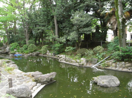 | 蕨城水濠跡の御殿池と土塁跡(右手)。 | |