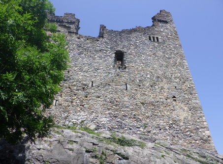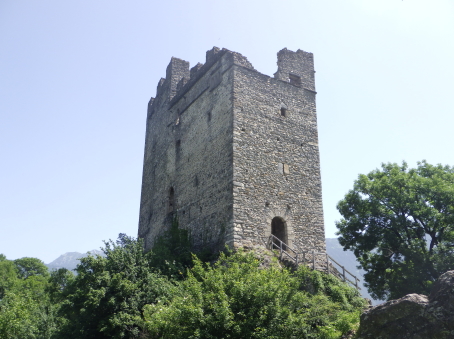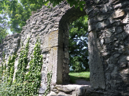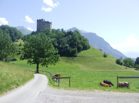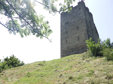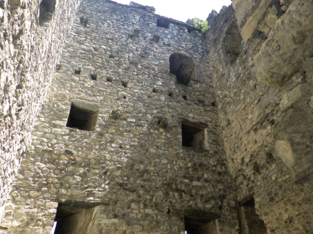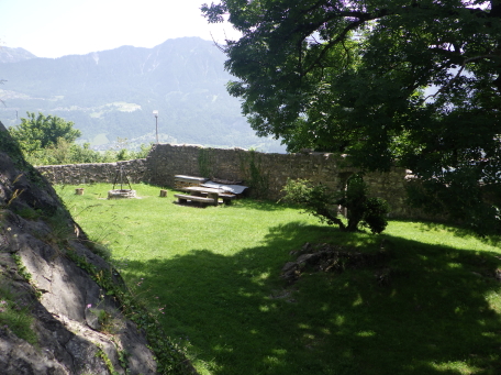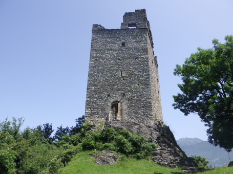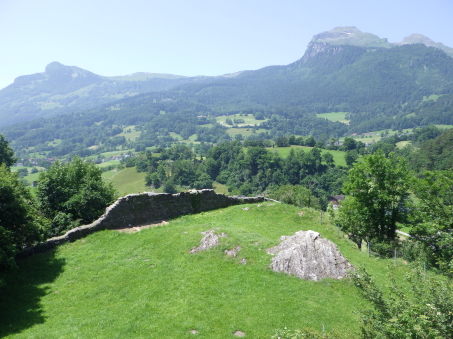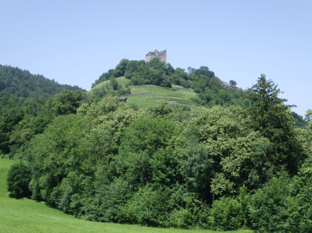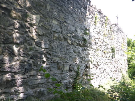 <沿革> 年輪年代法からは1224~28年の築城と推定され、築城主としてヴィルデンベルク家が挙げ られているものの、確証はない。ヴィルデンベルク家は今日のグラウビュンデン州ルシャイン を本貫とする一族で、当時ヴァルタウ城南方のフロイデンベルク城を足がかりに北への勢力 拡大を図っていたとされる。 ヴィルデンベルク家は1302年に男系が絶え、相続人のアンナ・フォン・ヴィルデンベルクは ヴェルデンベルク城主のヴェルデンベルク=ハイリゲンベルク伯フーゴー3世と結婚していた ため、ヴィルデンベルク家の所領はフーゴー3世が相続した。他方で1342年には、ヨハネス・ フォン・ベルモントが城を妻のアーデルハイト・フォン・クリンゲンへ抵当に入れたとする文書が あり、ヴァルタウ城の所有者に関する詳しい変遷は明らかでない。アーデルハイトはヴィル デンベルク家の祖であるザーゴグン男爵家の庶流の出身であったため、ヴェルデンベルク= ハイリゲンベルク伯家と城の所有権を争っていたとする説もある。 1352年、ヴェルデンベルク=ハイリゲンベルク伯と対立するベルモント家らの領主が蜂起 すると(ベルモント合戦)、ヴェルデンベルク=ハイリゲンベルク伯は敗れたがヴァルタウ城は 保持したとみられる。その後、擾乱が拡大する中で、1360年にウルリヒ・ヴァルター・フォン・ ベルモントがヴァルタウ城を制圧した。 1371年にウルリヒ・ヴァルターが死去すると、城はヴェルデンベルク=ハイリゲンベルク伯の 手に戻ったとみられ、ノイシェレンベルク城などと共にマイヤー・フォン・アルトシュテッテンが 管財人になった。1393年にヴェルデンベルク=ハイリゲンベルク伯と同族のヴェルデンベルク =ザルガンス家の間で戦いが始まると、翌年ないし翌々年に、ヴァルタウ城は11日間の包囲 の末に占領された。 1400年、ヴェルデンベルク=ハイリゲンベルク伯ルドルフ2世が城を買い戻したものの、長き に渡る同族間の争いで経済的に困窮をきたしたため、1402年にはハプスブルク家へ抵当に 入れている。1414年、トッゲンブルク伯フリードリヒ7世に売却されたヴァルタウ城は、1429年 にベルンハルト・フォン・ティールシュタインへ抵当として譲渡された。 15世紀半ば以降、城はシェンク・フォン・リームブルク家、モーントフォルト=テットナング家、 ザックス=ミソックス家と所有者を転々と変えた。1485年にはルツェルン市に、1493年には カスターヴァルト男爵家に、さらに1498年にはヘーヴェン男爵家に売却されている。 1517年、グラールス州がヘーヴェン男爵の所有するヴェルデンベルク領を購入したものの、 ヴァルタウ城はすでに価値を失っており、1530年ごろに放棄され荒れるに任されたとされる。 1818年に至って民間に売却され、1911年にヴァルタウ市に寄贈された。1982年に大規模な 修復が施され、今日に至っている。 <手記> ヴァルタウ城はヴェルデンベルク城とザルガンス城の中間付近に位置し、ライン川を挟んで 北東にはリヒテンシュタイン公国の首都ヴァドゥーツがあります。「Gretschins, Magletsch」が 最寄りのバス停ですが、ここを通るバスは地域循環なので鉄道駅とは接続していません。 城山への分岐点には湧水があり、夏でも冷たくて美味しかったです。 城内には主塔が天井の抜けた状態で修復されており、入口の脇には1232(年)と彫られた 石がはめ込まれています。建物は大きく前後2つの空間に分かれていて、もともとは主塔に 居住用の建物が付属していたものが、段階的に増改築されて同じような高さに融合したのだ そうです。曲輪の周囲には環状城壁や門跡が残っていますが、背後は緩やかな鞍部のまま で、堀切があったかどうかは定かでありません。 全体として廃墟のままで保全が図られており、また主塔内も無料で出入りできます。個人的 には、西洋の城跡の保存態様としては最良の形なのではないかと考えています。また、北へ 少し行くとプロヒャ城跡があるので、併せて訪れるとよいでしょう。 城山の中腹には小屋があり、私が訪れたとき、その脇で男性が二人で作業をしていました。 挨拶をすると「ビールでもどうだい」とお誘いを受けたので、ありがたく頂戴することに。冷えた ビールをいただきながら、お二人の休憩がてらいろいろと楽しく歓談しました。こういった触れ 合いも、観光名所ではない城跡を巡る旅ならではの魅力ですね^^ |