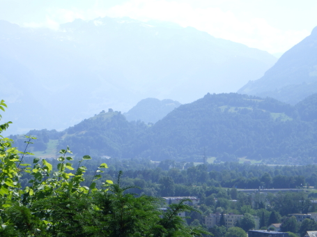 | ファドゥーツ城からヴァルタウ城を望む(左側の丘)。 | |