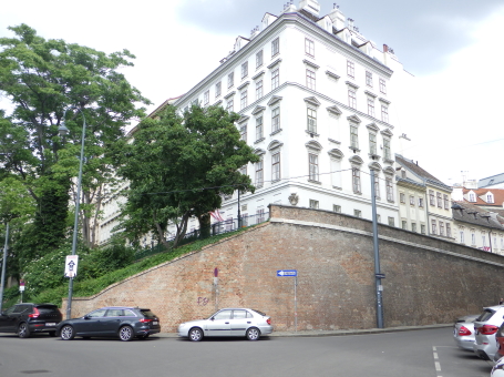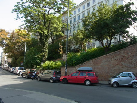 | メルカーバスタイのようす。 正面の建物内にベートーヴェン旧居があります。 |
