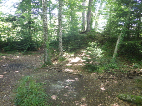 | 主塔跡の1段下の曲輪と土塁。 | |