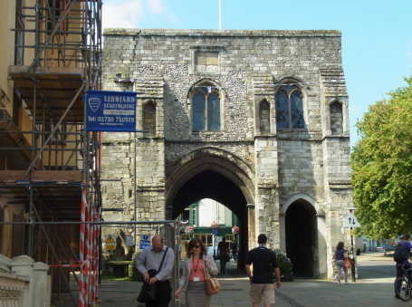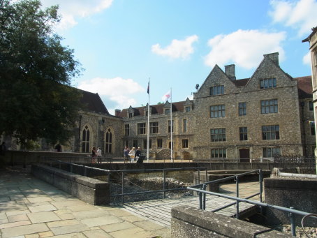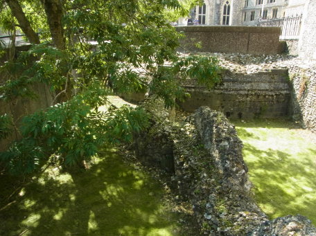 <沿革> 1067年、イングランド王ウィリアム1世(征服王)によって築かれたと伝わる。ウィリアム 1世は、前年にエドワード懺悔王の義兄ハロルド2世を討って、イングランド王に即位して いた。ウィンチェスターはローマ時代に端を発する町であるが、城が建てられた位置は、 ローマ時代の市域の南西端にあたるとされる。 1141年、イングランド王スティーブンと神聖ローマ皇后マティルダとの間の、いわゆる 「無政府時代」と呼ばれる内戦に際し、ウィンチェスター城は国王軍によって包囲された。 スティーブンが死ぬと、王位は協定によりマティルダの子ヘンリー2世が継ぎ、ヘンリー 2世はウィンチェスター城を増改築した。 1216年、第一次バロン戦争でフランスのルイ王太子軍の上陸を許したイングランド王 ジョン(欠地王)は、ロンドンを棄ててウィンチェスターに逃れた。ほどなくウィンチェスター もフランス軍によって包囲されたが、このときすでにジョンはウィンチェスターにはおらず、 大きな抵抗もなく陥落した。この戦いに際して、城も被害を受けたといわれる。ジョンの 子ヘンリー3世の代に、ウィンチェスター城は修復されるとともに改築された。グレート・ ホールが建造されたのもこのときとされる。しかし、ヘンリー3世の子エドワード1世の代 の1302年にウィンチェスター城の館が火事で焼け落ち、エドワード1世と妻マーガレットは かろうじて難を逃れたといわれる。 イングランド内戦さなかの1646年、王党派の拠点となっていたウィンチェスター城は、 議会軍の大将であったオリヴァー・クロムウェルの命令により破壊された(1651年とも)。 城はグレート・ホールを残すのみとなったが、1680年代に国王チャールズ2世により再建 計画が持ち上がった。これはフランスのヴェルサイユ宮殿に対抗したもので、ロンドン 大火後の復興計画を進めたクリストファー・レンの設計により「キングス・ハウス」の建設 が始められたが、1685年にチャールズ2世の弟のジェームズ2世が即位すると、計画は 中止された。まもなくウィンチェスター城は廃墟同然となったといわれる。 その後19世紀にグレート・ホールを取り込む形で地方議会の建物が建設され、今日に 至っている。 <手記> ウィンチェスターは、ローマ時代から重要視され、中世には何度もイングランドの首都と なった歴史上重要な街です。小高い山に囲まれた川沿いの小さな盆地上にあり、必ず しも発展性のある地形とはいえないのですが、この町が取り立てられたのは、おそらく かつてはノルマンディーからイングランドへ渡るルートが一般的で、ノルマンディーへの 海路とイングランド内陸とを結ぶ結節点に位置しているからであると推測されます。 後世、ウィンチェスター城址に唯一の残存建造物であるグレート・ホールを取り込む形 で近代建築物が建てられたために、中世の遺構はほとんど分からなくなっています。 ただ1つ、主塔跡の基壇部分が最近になって発掘・整備され、内部見学もできるように なっています。 グレート・ホールとその付属建築は、現在は博物館となっています。グレート・ホール には、「アーサー王物語」として知られるアーサーら円卓の騎士のテーブルと呼ばれる 巨大な円形板が飾られています。ただし、アーサー王は実在したか分からない人物で あり、円卓自体も実際は13世紀に製造されたものとされています。 このように、中世ウィンチェスター城の遺構は多いとはいえませんが、ウィンチェスター の町はこじんまりとしていて清々しく、全体として歴史を感じるのが楽しいところといえる と思います。 |