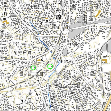 <沿革> 留守氏重臣逸見遠江守の居館といわれるが、詳細は不明である。 東北本線の線路を挟んだ西側の丘には、野田館があったとされる。 両館は土塁線で結ばれていたと考えられるが、野田館の方は城主も 含めて詳細は不明である。 <手記> 上の地図の右側が矢作ヶ館跡、左側が野田館跡です。前者の方は 現在畑地となっています。土塁状遺構が見受けられるということですが、 民家の裏山なので立ち入りはしませんでした。 また、野田館跡は現在宅地化されていて遺構はありません。北麓の 「野田館公園」と名づけられた小さな公園が唯一のよすがです。 |