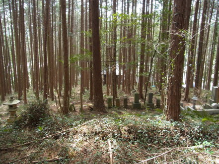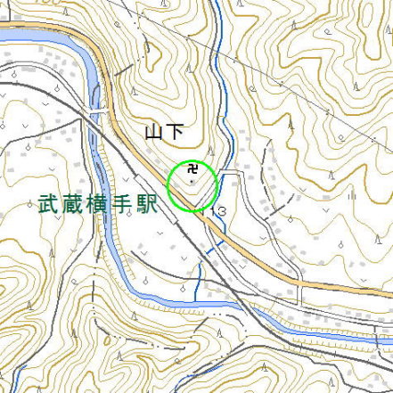 <沿革> 山口氏の出自については不明だが、戦国時代末には後北条氏重臣松田家の被官 として横手村を預かっていたことが、松田憲秀から山口若狭守・弥太郎父子に宛てた 書状からうかがえる。 <手記> 『中世城館調査報告書集成』によれば、高麗川と関ノ入沢に挟まれた細長い峰の 先端裾付近が、山口氏館跡とされています。国道の山側に2、3軒の住宅があり、 その背後に小さなお堂があります。『集成』が示しているのはそのあたりなのですが、 とくに城館跡を思わせるようなものはありません。 お堂の背後には山口家の墓があります。たち並ぶ墓碑にはどれも唐菱紋が刻まれ ていることから、大内氏庶流の山口氏との関連が想起されます。大内姓山口氏は、 大内氏の拠点山口を苗字に戴いたもので、尾張国寺部城主となった一族がもっとも よく知られています。尾張山口氏は、江戸時代には牛久藩1万石の大名として存続 しています。 |