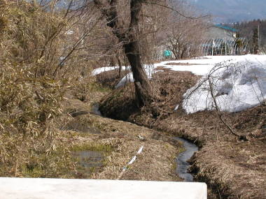 <沿革> 平安末期、京都の藤原安親が平泉の奥州藤原氏を頼って下向し、当地に居館を構え のがはじまりと伝わる。安親は「横越太郎」と名乗り、以降約250年にわたって横越氏が 下長井荘白川以北を治めた。 後に横越氏は鮎貝城を築いて移り、鮎貝氏を称した。横越城のその後について詳細 は不明である。江戸時代に入って、館の跡地に高徳寺が建立された。 <手記> 横越城は、東西140m、南北130mほどの方形館です。現在でも、南北に「南小路」 「北小路」の字名が残っていますが、遺構はほとんど見られません。南小路にお住まい の菅野氏に伺ったところ、昔は四方を巡る堀が残っていたそうですが、今では側溝程度 に埋まってしまっています。 なお、当城を訪れるにあたって有益なお話をいただいた南小路の菅野氏、横田尻の 小林氏、そして親切に場所を教えてくださった横田尻公民館の方々に、この場を借りて 御礼申し上げます。 |
