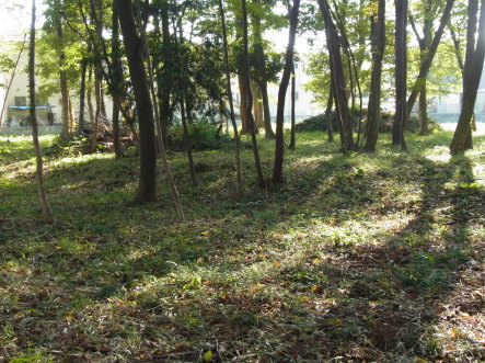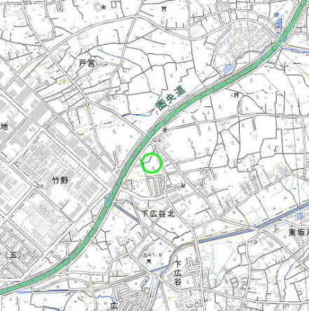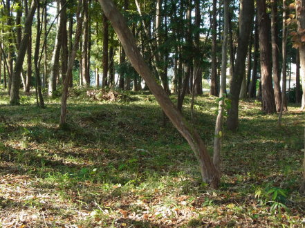 <沿革> 字在家に堀や土塁の痕跡が見られることから、城館跡の存在が指摘されている。 <手記> 諏訪神社境内北側の雑木林一帯が在家館跡とされています。圏央道を挟んで 北西側には広谷北城が、そして県道を挟んで東側には大堀山館があります。 明るい林のなかを歩いていると、たしかに堀や土塁の痕跡らしきものは散見され ます。ただ、城館跡のものとするには不明瞭なうえに、曲輪を形成しているように は、はっきりとは見てとれません。この痕跡と在家という字名のみが頼りとするの であれば、城館が果たして存在したかどうかは留保が必要に思われます。 周辺には『新編武蔵国風土記稿』の下広谷村の項に、「古跡三ヶ所 土人城の 跡と唱て何人の居跡なることを伝えず」とあるとおり複数の城館跡が密集している ことはよく知られています。ただ、在家館がたとえ実在したとしても、この「3ヶ所」 に含まれる可能性は低いだろうと思われます。 |
