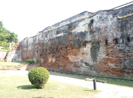 <沿革> 1622年に澎湖諸島へ進出したオランダは、スペインが台湾島への進出を図っていることを知り、 翌1623年に前身となる竹木製の簡易な砦を建造した。しかし翌1624年1月に在地のシラヤ族に 攻撃され、当時のオランダは明軍とも対峙していたこともあり、4月に台湾から一時撤退した。 同年8月、オランダが澎湖諸島を放棄する代わりに、明がオランダの台湾進出を容認することで 講和が結ばれ、上鯤鯓の旧砦を再興してオラニエ城(奧蘭治城)と名付けた。1626年には、本国 のゼーラント州にちなんでゼーランディア城(熱蘭遮城)と改称された。その後、城塞の弱点を補う ため湾口側に外郭が増設され、1637~1639年に完成した。ちなみに、『探訪ブックス 四国の城』 (小学館)にはゼーランディア城を模倣して愛媛県の今治城が築かれたとする説があるとある。 ただし、今治城はゼーランディア城より20年も早く築城されており、時系列的に整合性がない。 1658年に鄭成功が清に対する北伐軍を結成すると、当時の蘭領台湾行政長官フレデリック・ コイエットはオランダ東インド会社にゼーランディア城の強化を訴えたが、容れられなかったため、 独断で外郭北東隅に稜堡を増築した。 1661年4月30日、鄭成功率いる2万5千の軍勢が、鹿耳門からゼーランディア城の北に広がる 台江内海に侵入した。当時、ゼーランディア城には400名ほどの兵士しかおらず、鄭軍の上陸を 阻止することはできなかった。5月6日には東方対岸のプロヴィンティア城(普羅民遮)が降伏し、 鄭成功はいよいよゼーランディア城の攻略にかかった。しかし、追い詰められた籠城方の抵抗は 激しく、海陸双方で大きな被害を出したため、力攻めを諦めて兵糧攻めへ転換した。 鄭軍もまた食料備蓄が十分ではなく、兵に屯田させるなどして包囲を続けた。この間、オランダ は9月にかけて数回にわたり援軍を派遣したが、鄭軍の艦隊に阻まれ失敗している。また鄭成功 は、捕虜となっていた宣教師アントニウス・ハンブルクを使者として降伏を迫ったが、コイエットは これを拒絶したため、ハンブルクは7月21日に処刑された。 翌1662年1月、ドイツ人傭兵ハンス・ユルゲン・ラディスが城から脱走し、鄭成功に城内の窮状 を伝えた。さらにラディスは、城の南西に位置するユトレヒト砦の重要性と早期決戦を訴え、同月 25日に砦が攻め落とされた。これにより城内の士気は完全に崩壊し、ついにコイエットは同27日 に降伏した。ただし、ラディスの存在はオランダ側の記録にしかみられず、戦責を免れるための コイエットらによる創作とする説もある。 城内および島内のオランダ関係者は、持てるだけの私財と片道の食料を手に、台湾を離れた。 しかし、鄭成功は捕虜の返還には応じず、女性は自軍の兵士に妻や慰み者として売り払われ、 男性や子供は殺されるか奴隷となった。鄭成功自身も、ハンブルクの娘を妾としたとされる。 戦後、鄭成功は台南に独立勢力を構築し(鄭氏政権)、ゼーランディア城を居城として安平城と 改名した。しかし、同年5月に鄭成功は急死し、鄭氏政権は1683年に3代目の鄭克塽が清朝に 降伏して滅亡した。 清朝は安平城を重要視せず、1718年に軍装局が建てられたものの、城壁などは朽ちていった。 1868年には、イギリス艦隊の砲撃により城内の武器庫が爆発し、安平城は完全に廃墟となった。 1874年、台湾出兵の欽差大臣として台湾に赴いた沈葆楨は、安平城の南に億載金城を建造し、 安平城の残された城塁はその資材として利用された。 <手記> 安平城は、台江内海に北向きに突き出た砂嘴の先端部に築かれた要塞です。今では内海は ほとんど埋め立てられ、砂州で繋がっていたはずの南側は川と入り江になっており、当時の地形 からはだいぶ様変わりしてしまっています。 古堡は有料の史跡公園として整備され、資料館も建てられています。内郭跡にはピラミッド状の 高台と洋風建築がありますが、これらは日本統治時代に作られたものだそうです。高台の一角の 展望台からは四周が望めるものの、やはり海城らしさは感じられません。 園内には資料館に沿って外郭南辺の城壁が残っています。使われているレンガは、オランダが わざわざバタヴィアから取り寄せたのだそうです。外郭部には2か所の発掘展示と井戸跡があり、 後者の周囲には内郭で唯一残る城壁も見られます。 また、史跡公園外には外郭の北辺城壁も残っています。必ずしも遺構が多いとはいえないだけ に、見逃さないように注意したいところです。 |