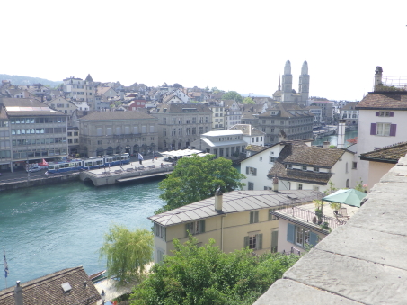 <沿革> ローマ時代、チューリッヒの中心部にあるリンデンホーフの丘の麓にトゥリクムという集落が 営まれていた。リマト川およびチューリッヒ湖の渡渉点として経済的に重要であったこの町は、 もともとは三方を湖水に囲まれていたが、干拓により丘の南方に平地が形成されていった。 民族移動時代に入ると、4世紀初めごろにアレマン人の侵入に備えるため、丘の上に城砦が 築かれた。 843年にフランク王国が三分されると、トゥリクムは東フランク王国に属した。東フランク王 ルートヴィヒ2世の祖父カール大帝が、トゥリクムに宮殿の一つを構えて実際に居住していた とする伝説があるが、確証はない。リンデンホーフの城砦はルートヴィヒ2世によって王宮に 改修されたとみられている。また853年7月21日には、ルートヴィヒ2世は既にあった修道院 に広大な領土と治外法権および裁判権を与えたうえで、長女ヒルデガルトに譲渡するとする 公文書を発給し、これに基づいて女子修道院「フラウミュンスター」が設立された。このころ までに、トゥリクムから転じてチューリッヒの都市名が定着したとみられている。当時の市内 にはリンデンホーフの王宮やフラウミュンスターのほか、グロスミュンスターや聖ペーター 教会が独自の領土や教区をもって並立し、それぞれが城壁に囲まれている状態であったと 推測されている。 919年、チューリッヒはシュヴァーベン公ブルヒャルト2世に征服された。ザーリアー朝神聖 ローマ皇帝コンラート3世とギーゼラ・フォン・シュヴァーベンの子ハインリヒは、父から1038年 にシュヴァーベン公に封じられた。翌年に父が没してハインリヒ3世(黒王)としてドイツ王に 即位すると、ハインリヒ3世は1045年にロートリンゲン宮中伯オットー2世をシュヴァーベン公 に任じた。並行してフラウミュンスター修道院に貨幣鋳造権や関税徴収権、市場開設権など が認められ、修道院がチューリッヒ市の実質的な支配者となった。これは、ハインリヒ3世に よる貴族弱体化政策の一環であったといわれる。他方で、リンデンホーフの宮殿は皇帝の 命で増改築されたとみられ、帝国議会の開催地として使用された。 フラウミュンスターおよびグロスミュンスターの教会守護職はレンツブルク家が世襲して いたが、1079年ごろにツェーリンゲン家の手に移った。11世紀末にシュヴァーベン公に選出 されたツェーリンゲン公ベルトルト2世の子コンラート1世は、シュヴァーベン公ではなかった ものの、チューリッヒの実質的な統治者として最初の都城壁を築いたとされる。 1218年にシュヴァーベン系ツェーリンゲン家が断絶すると、シュヴァーベン公でもあった 皇帝フリードリヒ2世はチューリッヒの所領を分割し、リマト川右岸をキーブルク伯に、左岸を エッシェンバッハ=シュナーベルブルク男爵家に与えた。翌1219年にはチューリッヒ市が帝国 自由都市となり、市議会に独立した施政権が認められた。フラウミュンスターの修道院長が 再び市の事実上の統治者となったが、その職位が帝国の公爵位と紐づけられていたこと、 グロスミュンスターと勢力が競合していたこと、そして商都であるため商人や職人の発言力 が強かったことなどから、専権的に振る舞うことはできなかったとされる。13世紀後半以降 は聖職者の政治的地位が弱体化し、市民や帝国から派遣される執政官が市議会で重きを 成すようになった。 1273年にハプスブルク家のルドルフ1世が皇帝に即位すると、帝国税の徴収方法を巡って チューリッヒとの間に諍いが生じた。1291年にルドルフ1世が没すると、チューリッヒはハプス ブルク家との戦争に突入した。チューリッヒ軍はハプスブルク側の都市ヴィンタートゥールを 攻めたが大敗し、却ってルドルフ1世の子アルブレヒト1世にチューリッヒを包囲され、6か月の 攻防の末1292年4月に降伏を余儀なくされた。その結果、市議会ではハプスブルク家を支持 する商人層が発言力を増した。 1336年、騎士ルドルフ・ブルンを首魁とするクーデターが発生し、新憲法(ブルンのギルド 憲章)を掲げて翌年に皇帝から追認を受けた。追放された市議会議員らはラッパースヴィル へ逃れて亡命政府を樹立し、1350年に「チューリッヒ暗殺の夜」を企てたが失敗に終わった。 新憲法では市長の権限が大幅に強化され、騎士や裕福な市民、そして職人ギルトの選挙区 が設定された。 ラッパースヴィルはハプスブルク=ラウフェンブルク家の居城であったが、チューリッヒ暗殺の 夜への報復としてブルン自ら軍勢を率いて徹底的に焼き払ったため、チューリッヒは翌1351年 にスイス原初同盟へ加盟してハプスルブルク家と対峙した。1354年にかけて、3度包囲された ものの、ブルンの指揮の下で耐え抜き、1355年に和議が成立している。 16世紀後半には、第二次といわれる都城の強化および近代化が実施された。1624年には 第三次要塞化が議決されたが、1638年までは旧来の構造物の補強や増改築にとどまったと される